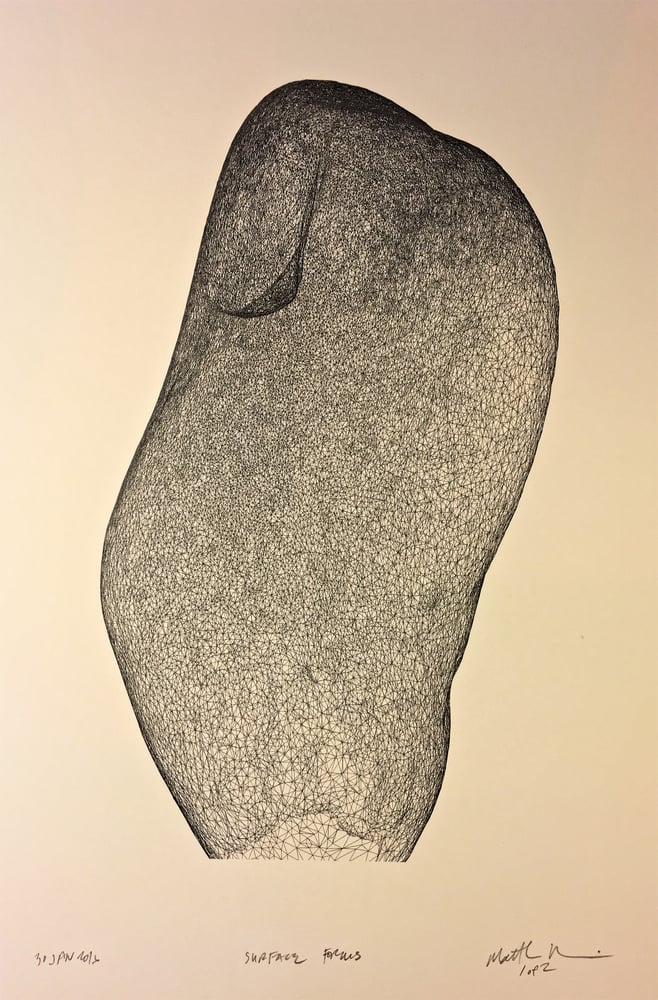 Limited print edition of 2, this is from recent work looking at solid found objects that are transformed and translated from physical to digital models and then onto a new physical surface. Collapsed onto a surface, I'm interested in the slippage - the transfiguration that takes place between and within the process of translation...
